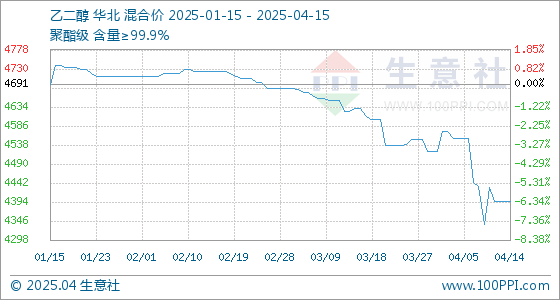 4月15日生意社乙二醇基准价为4396.67元/吨