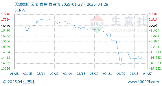 4月28日生意社天然橡胶基准价为14468.33元/吨