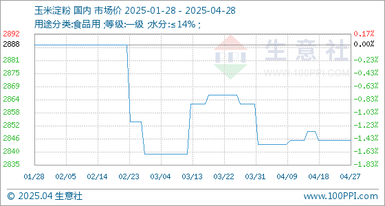 4月28日生意社玉米淀粉基准价为2846.00元/吨