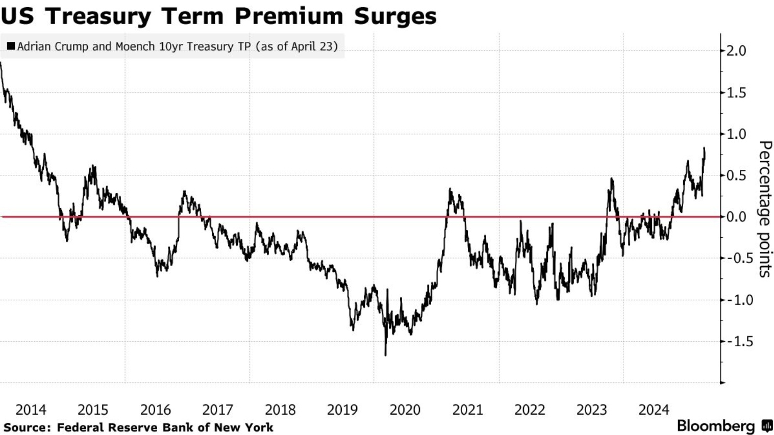 对此,布兰迪万全球投资管理公司630亿美元资产的掌舵人杰克·麦金泰尔直言:"我们正步入新世界秩序。"即便特朗普在关税问题上出现政策回摆,其制造的不确定性已推动长期美债期限溢价(投资者要求的风险补偿)升至2014年以来最高水平。