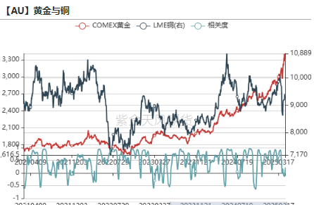 从滚动相关性的角度来看,黄金与美元指数、铜的相关性上升、与原油的相关性走低。