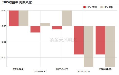 5年期和10年期TIPS收益率走高,5年期TIPS收益率收于1.56%,较前周下行13bps;10年期TIPS收益率收于2.02%,较前周下行9bps 。