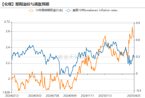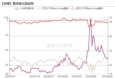 内外溢价回落显示国内购金热情退散。4月22日,当现货黄金价格突破3500美元/盎司时,黄金的内外溢价飙升至20元/克,这一现象反映出商业银行、保险公司等金融机构以及个人投资者对黄金的极端热情。同时,沪金2506合约的持仓量也突破20万手,远超季节性平均水平。然而,随着金价的调整,黄金的内外溢价已经回落至10元/克以内的正常水平,显示出市场交易拥挤度的显著下降。