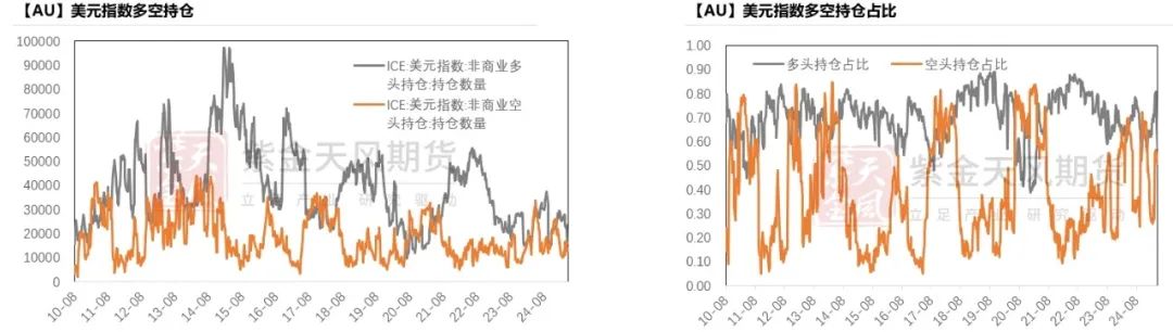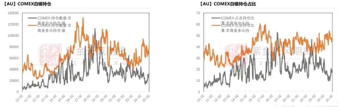 持仓占比方面,非商业多头持仓减少至44%附近,非商业空头持仓减少至13.6%附近。