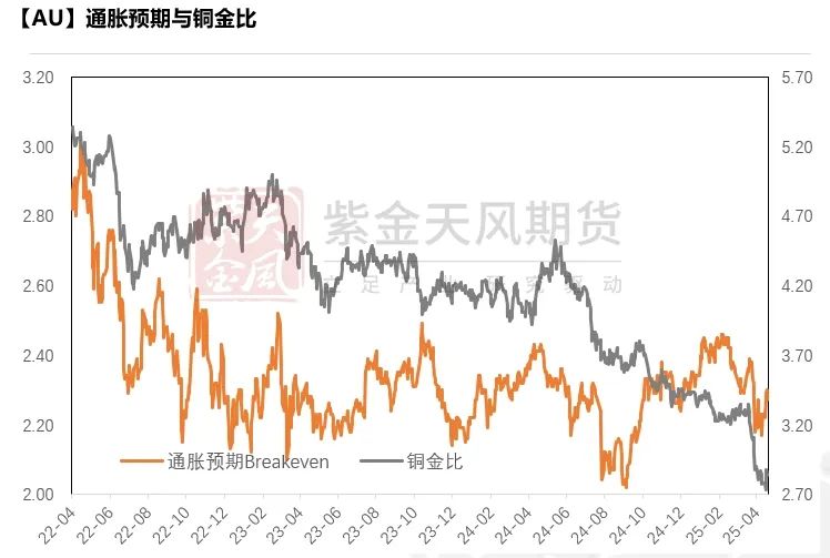 上周铜金比升至2.86,铜价上涨、黄金下跌,显示全球总需求动能边际上升。