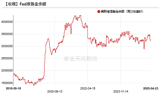 上周三美联储准备金余额为约3.209万亿美元,较前一周回落720亿。