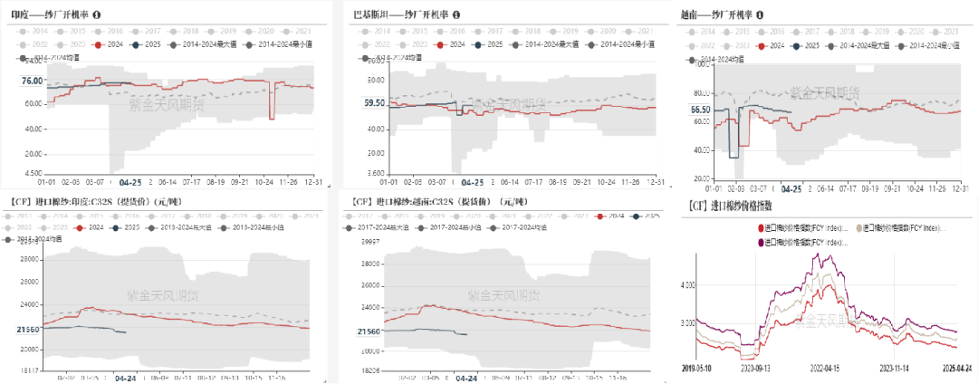 开机方面,印度、巴基斯坦开机维持较好,越南开工下滑。