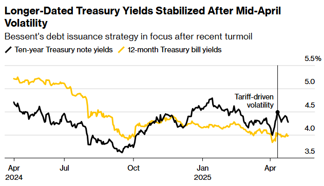 2月5日的最新声明——贝森特任期内的第一次——保留了耶伦时代的指引,预计“至少在未来几个季度”将保持稳定的票据和债券拍卖规模。根据历史模式,周三的公告将确定下周所谓的季度再融资标售的规模,包括3年期、10年期和30年期公债。它还将预测到7月底之前所有其他票据和债券拍卖的规模。
