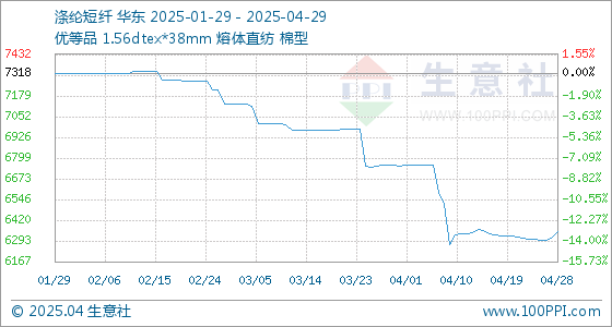 4月29日生意社涤纶短纤基准价为6352.92元/吨