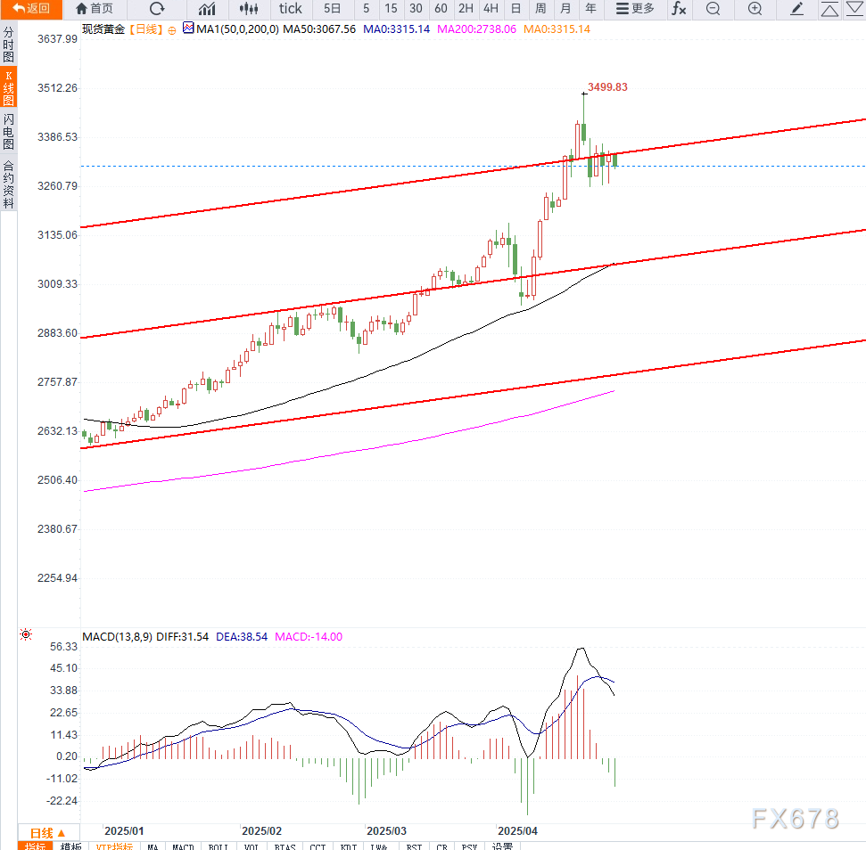 汇通财经APP讯——周二亚洲早盘,现货黄金价格(XAU/USD)震荡下跌,逼近3,300美元关口,延续了前一交易日的弱势行情。交易员对贸易局势的缓和反应积极,认为紧张情绪暂时缓解,从而减少了对避险资产的配置需求。