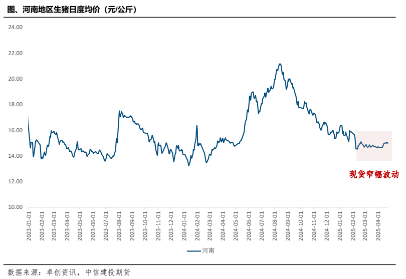 从25年生猪现货运行情况看,现货陷入低波震荡状态,行业呈现出磨底特征,情况类似23年,但25年波动区间更加收敛。25年春节后河南均价运行在14.5~15.0元/公斤区间。尽管全年价格中枢下移,但市场已从“暴涨暴跌”转向“成本驱动型”温和波动,标志着行业进入成熟期,集团对价格的控制力进一步增强。