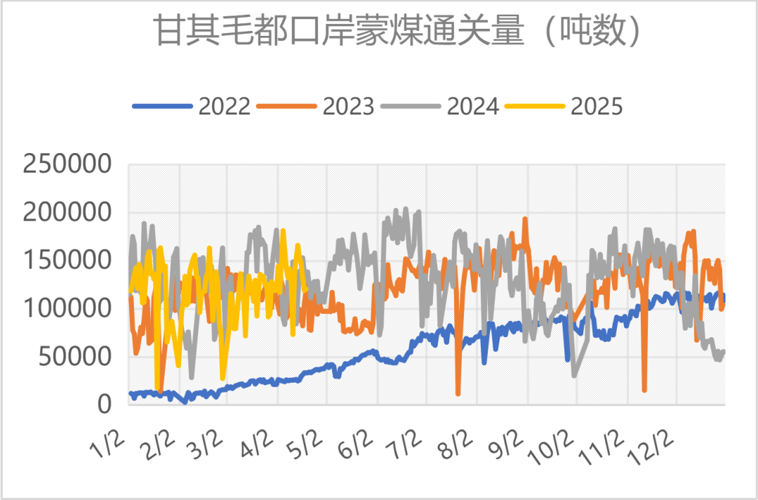进口煤方面,今年蒙煤供应依旧充足。甘其毛都口岸的蒙煤通关量维持高位,且4月通关量均值较3月有一定回升。