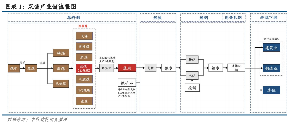 焦炭处于“煤—焦—钢”产业链的中游环节,是钢铁冶炼过程中的核心原料。焦炭产业一端连接上游的炼焦煤资源,另一端支撑下游钢铁工业的高炉冶炼,是典型的基础工业中间品。