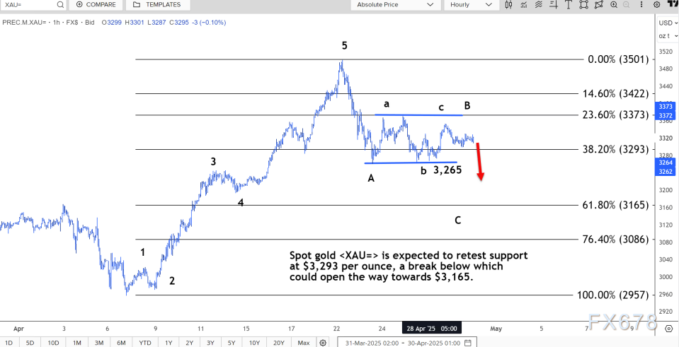 技术分析:现货黄金将重新测试3293美元的支撑位