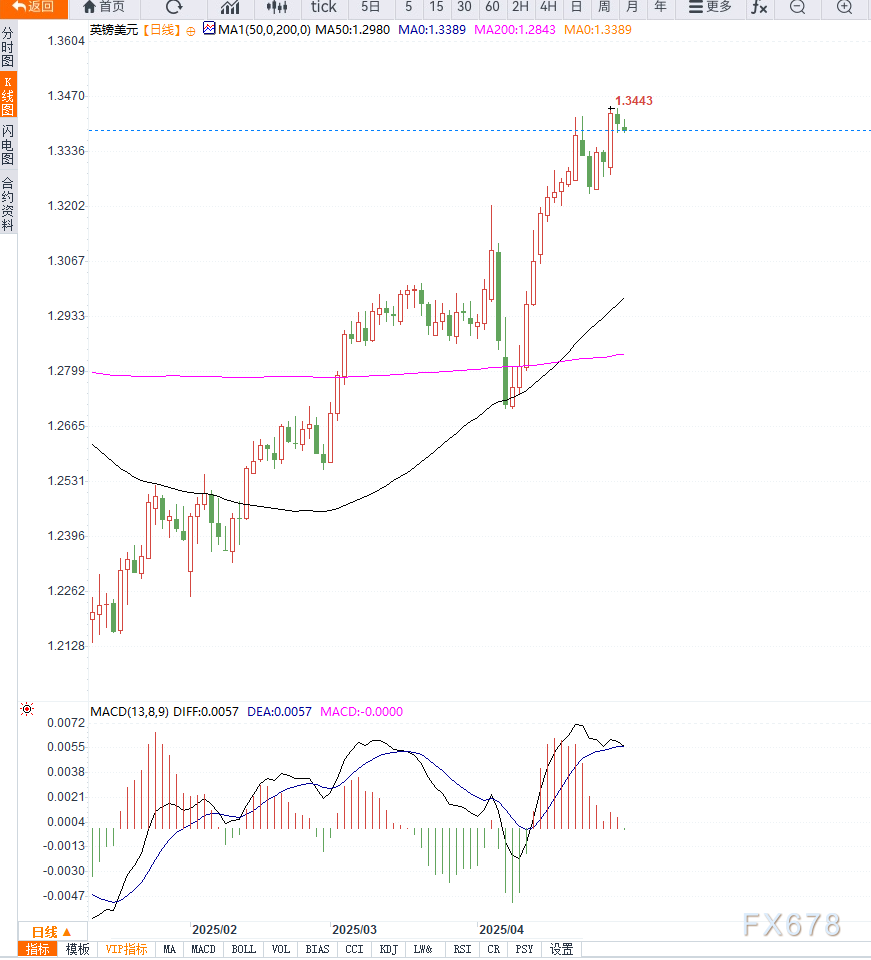 美国国债收益率结束四连跌,2年期与10年期收益率分别反弹至3.66%与4.17%,增强了美元的吸引力。同时,美国JOLTS职位空缺数据显示,3月新增岗位仅719万个,为2024年9月以来最低,暗示就业市场正在降温,经济前景趋于谨慎。
