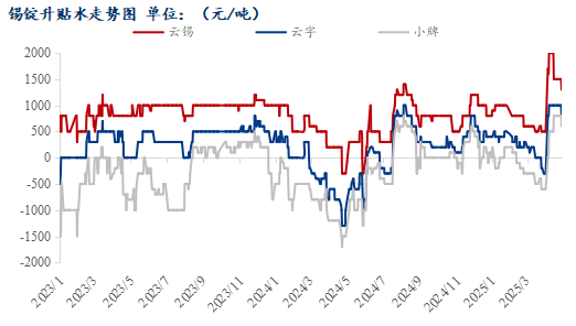 今日套盘商对沪锡2505合约套盘云锡升水1300元/吨左右,普通云字升水800-900元/吨;小牌升水600元/吨左右。