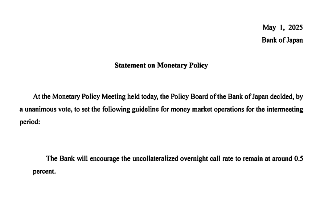 当地时间5月1日,日本央行将利率维持在0.50%不变,符合市场预期。日本央行行长植田和男表示,如果经济和物价走势符合预期,日本央行预计将继续加息,实际利率显著偏低。