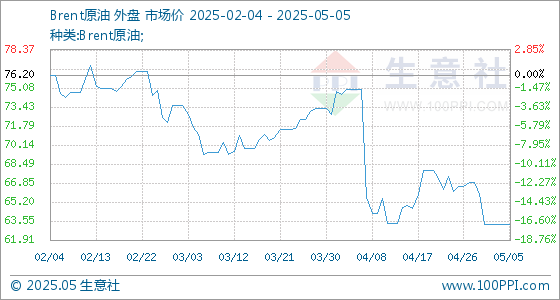 5月5日生意社Brent原油基准价为63.28美元/桶
