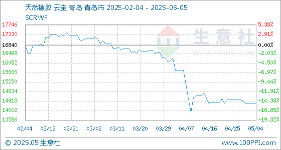 5月5日,生意社天然橡胶基准价为14308.33元/吨,与本月初持平。
