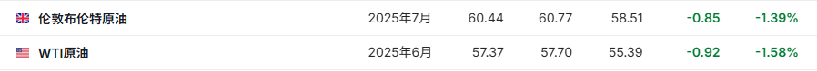 3. 截至发稿,WTI原油跌1.58%,报57.37美元/桶。布伦特原油跌1.39%,报60.44美元/桶。
