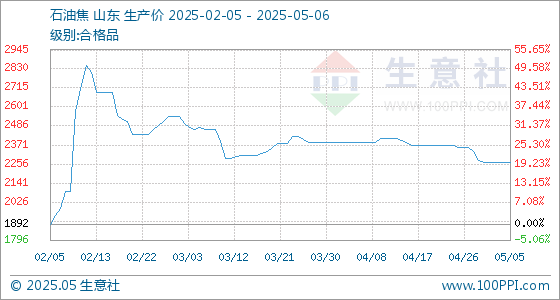 5月6日,生意社石油焦基准价为2262.50元/吨,与本月初持平。