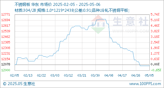 5月6日生意社不锈钢板基准价为12064.29元/吨