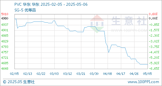 5月6日,生意社PVC基准价为4679.00元/吨,与本月初持平。