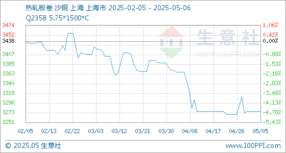 5月6日生意社热轧板卷基准价为3276.67元/吨