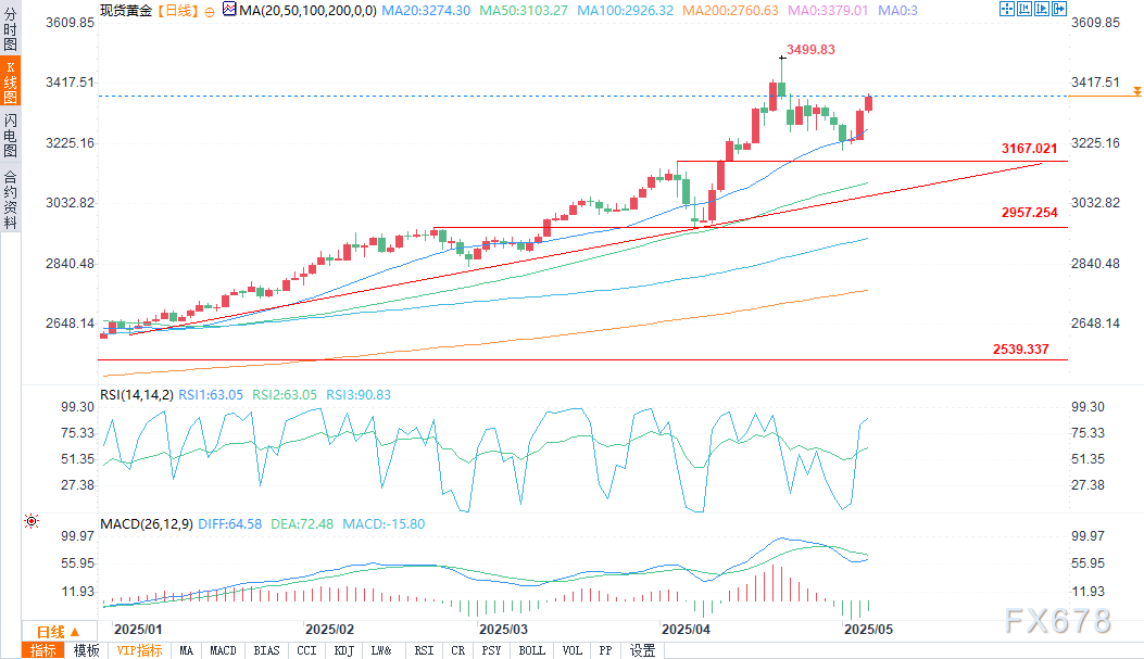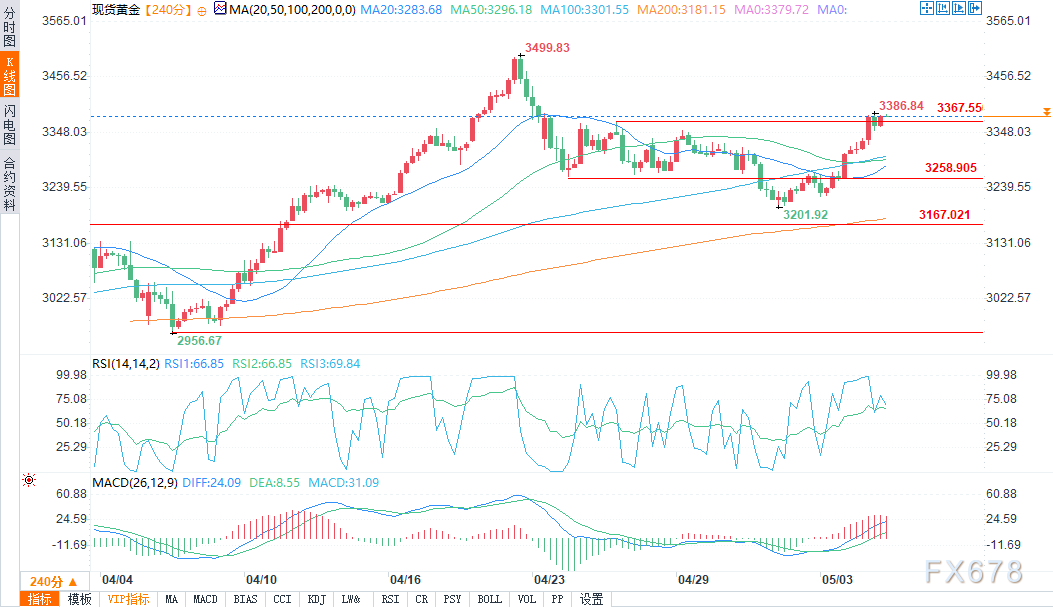 周二(5月6日)欧盘时段,现货黄金维持了早盘的涨幅,盘中报3378.07美元,涨幅约1.33%。早盘,黄金迅速突破了震荡区间,从3330美元附近跃升至3380美元下方,随后缓慢下跌至3350美元附近,欧盘时段再次攀升到3380美元下方。