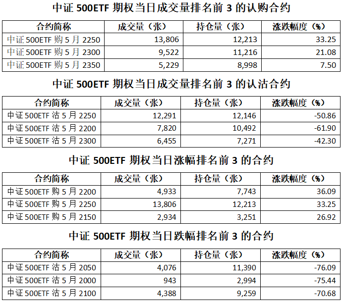 中证500ETF期权总成交面额27.84亿元,增加69.71%,期现成交比为0.01,权利金成交额0.43亿元;期权总成交量117,671张,增加66.84%,其中认购期权成交量57,837张,认沽期权成交量59,834张,认沽认购成交比率为1.03(上一交易日认沽认购成交比率为0.97)。