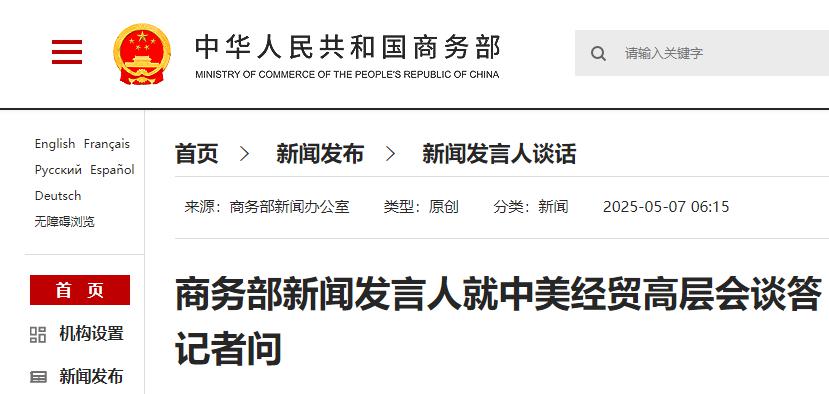 据商务部5月7日消息,商务部新闻发言人就中美经贸高层会谈答记者问。