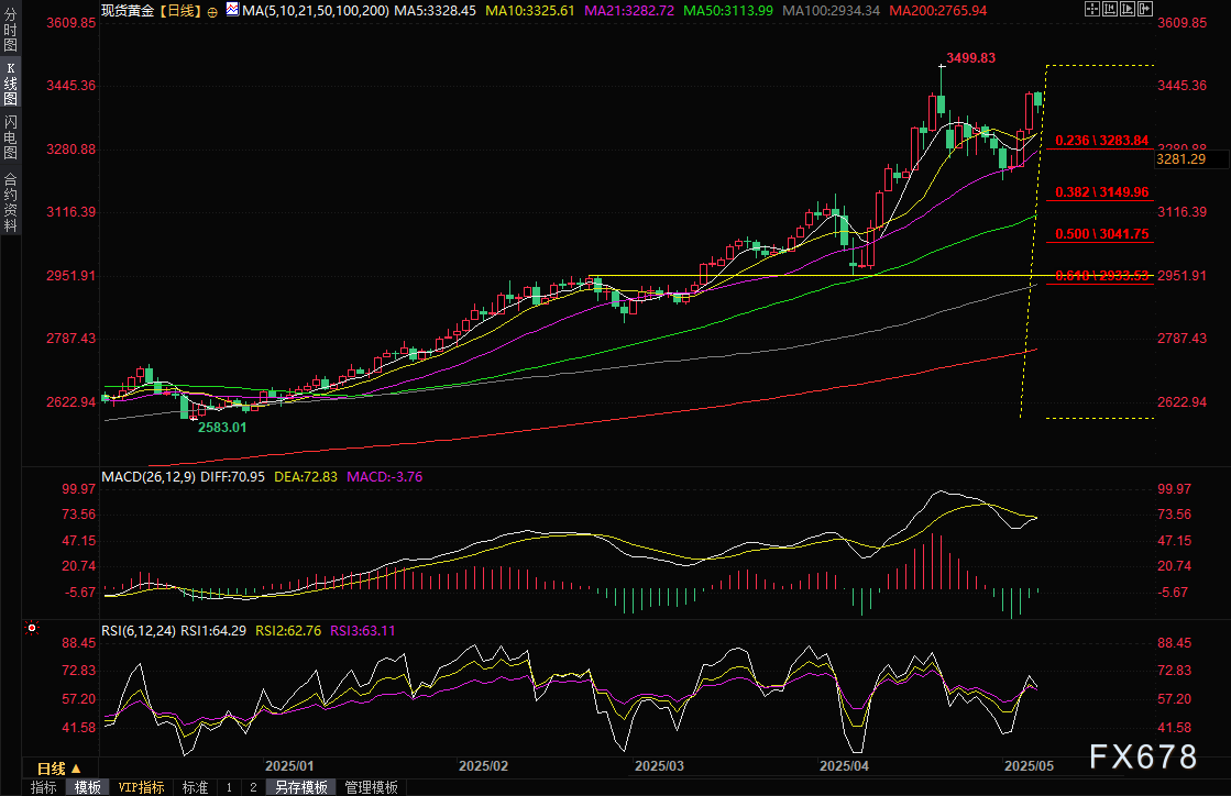 汇通财经APP讯——周三(5月7日)亚市早盘,现货黄金一度从隔夜创下的两周高位跳水逾50美元,最低触及3377.40美元/盎司,跌幅约1.5%,因中国外交部发表的日程显示中方将与美方牵头人美国财政部长贝森特举行会谈,市场对国际贸易局势的担忧情绪降温,打压黄金的避险需求。不过,本周迄今,金价仍上涨逾4%。