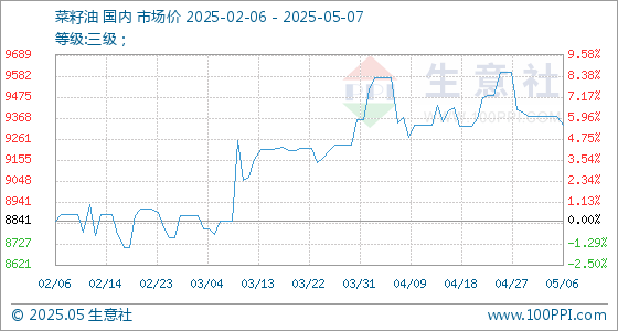 5月7日生意社菜籽油基准价为9330.00元/吨