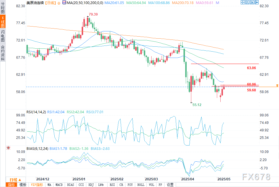 市场也在等待美国能源信息署(EIA)的官方每周库存数据,预计美国原油库存将减少80万桶。这将标志着库存连续第二周下降,这可能是供需平衡开始收紧的一个信号。美国石油协会(API)的初步数据显示,在截至5月2日的一周内,原油库存降幅大于预期,减少了450万桶。