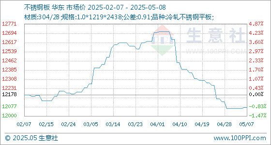 5月8日生意社不锈钢板基准价为12071.43元/吨