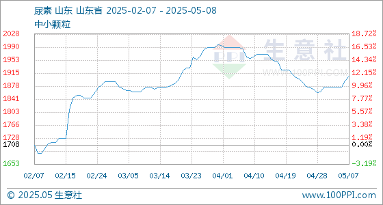 5月8日,生意社尿素基准价为1906.67元/吨,与本月初(1875.00元/吨)相比,上涨了1.69%。
