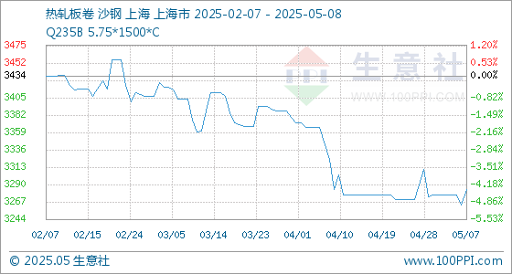 5月8日生意社热轧板卷基准价为3283.33元/吨