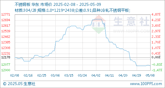 5月9日生意社不锈钢板基准价为12064.29元/吨