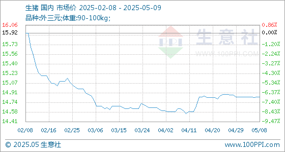 5月9日生意社生猪基准价为14.83元/公斤