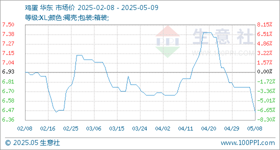 5月9日生意社鸡蛋基准价为6.45元/公斤