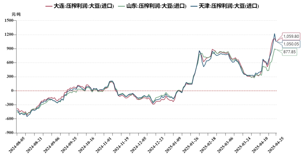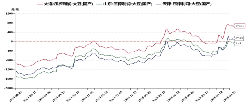 国产大豆&进口大豆压榨利润走势图(元/吨)
