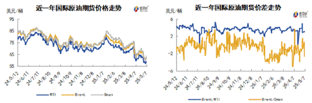 本周期内,供应方面,OPEC+8国(沙特阿拉伯、俄罗斯、伊拉克、阿联酋、科威特、哈萨克斯坦、阿尔及利亚和阿曼)达成协议,将在6月再度增产41.1万桶/日。这是该联盟继4月意外宣布5月同等规模增产后,连续第二个月打破市场预期。根据计算,OPEC+8个国家6月增产后,总增产幅度达到96万桶/日,这意味着自2022年以来协议的220万桶/日减产幅度已解除44%。此外,三位知情消息人士表示,近期OPEC+成员国之间因遵守生产配额问题而关系紧张。除供应面外,投资者对经济与能源需求前景的担忧也导致油价承压。市场调查显示,特朗普对美国进口产品加征的激进关税令全球经济很可能在今年陷入衰退,投资者对美国关税政策可能会拖累全球经济增长并削弱对石油的需求的担忧升温。