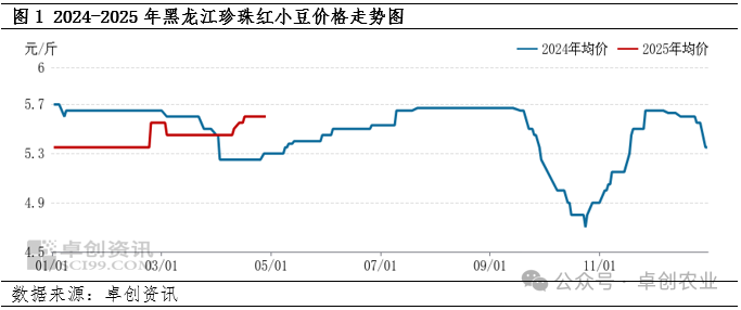农户余粮方面:据卓创资讯统计,截至4月29日主产区农户红小豆平均售粮进度达86%左右,同比加快4个百分点。随着产区农户余粮水平低位,贸易商按需循环补库,红小豆毛粮价格上涨。以黑龙江哈尔滨尚志地区瑞丰一号/日本红小豆为例,截至4月29日红小豆毛粮采购价格上调至4.50-4.70元/斤,按质定价,与3月同期相比均价上涨0.20元/斤左右,涨幅4.55%。受此影响,产区红小豆成品出货主流报价涨至5.05元/斤左右,月环比上涨0.25元/斤左右,涨幅5.21%。