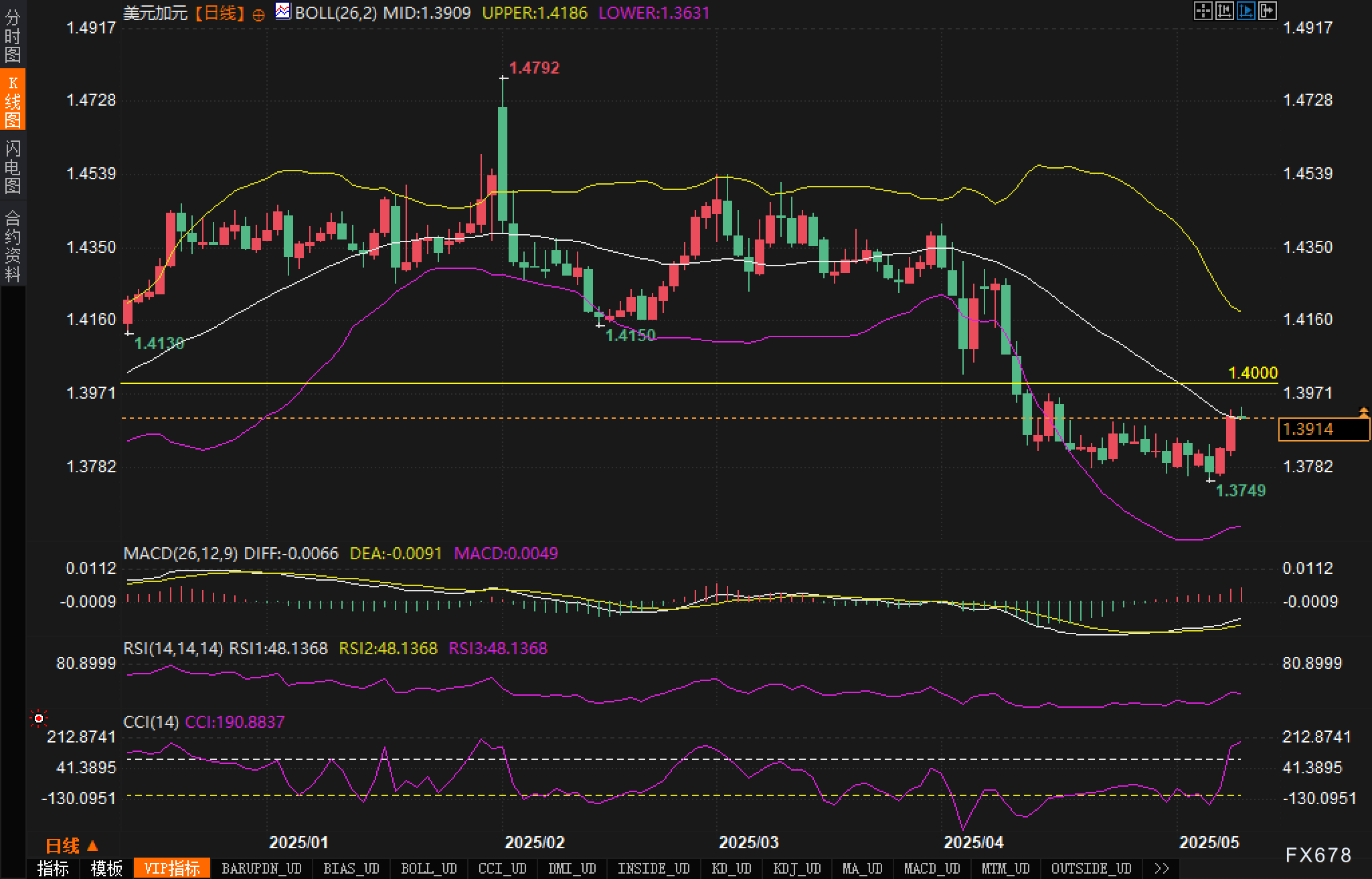 汇通财经APP讯——周五(5月9日),美元/加元汇价从三周高点1.3950附近小幅回落,多种因素共振导致汇价短线承压。然而,从技术面和基本面综合研判,美元对加元的整体上行趋势仍未改变。