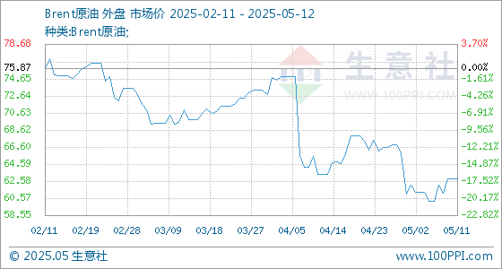 5月12日生意社Brent原油基准价为62.84美元/桶