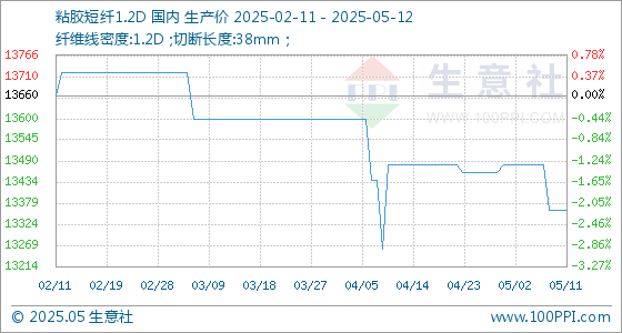 5月12日生意社粘胶短纤1.2D基准价为13360.00元/吨