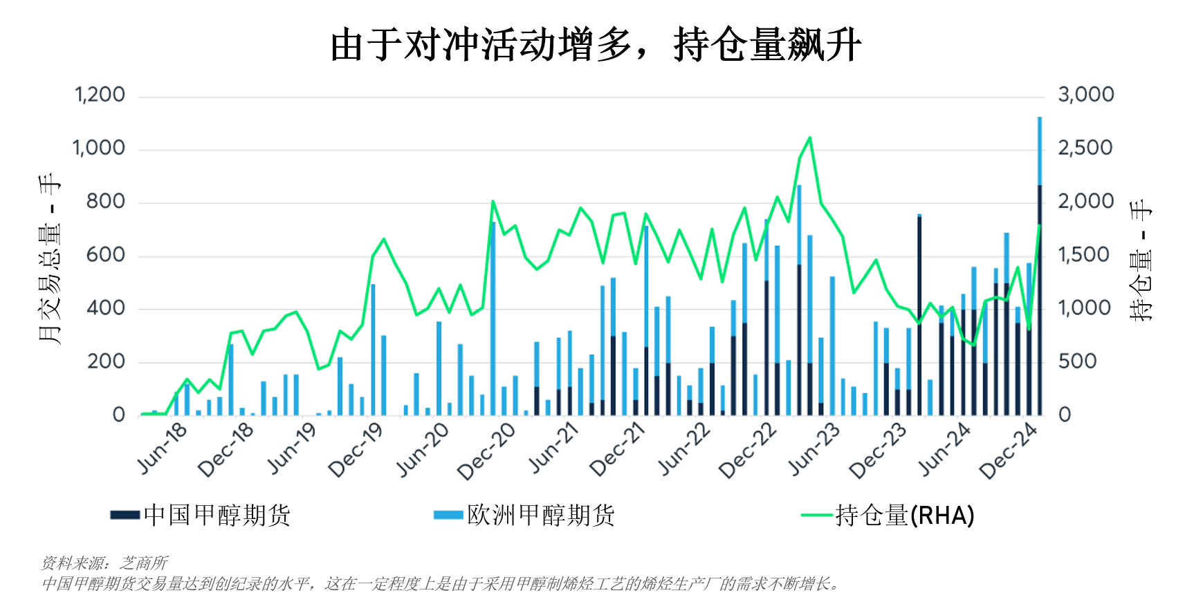 · 继甲醇期货合约交易量于2024年创下历史新高后,市场参与者管理价格风险的需求推动交易继续高涨