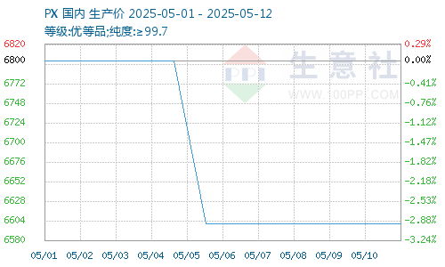 5月12日中石化销售公司对二甲苯价格暂稳,现执行价格为6600元/吨,华东、华北、华中、华南均执行此价格,扬子石化、镇海石化等装置运行稳定,走销正常。截止5月9日亚洲地区对二甲苯市场收盘价格为760-762美元/吨FOB韩国和784-786美元/吨CFR中国。