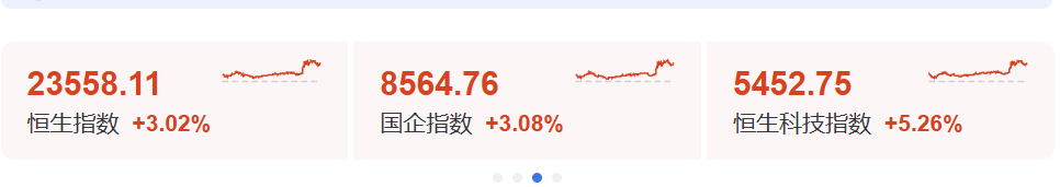 港股直线拉升,恒生指数涨约3%,恒生科技指数涨约5%。