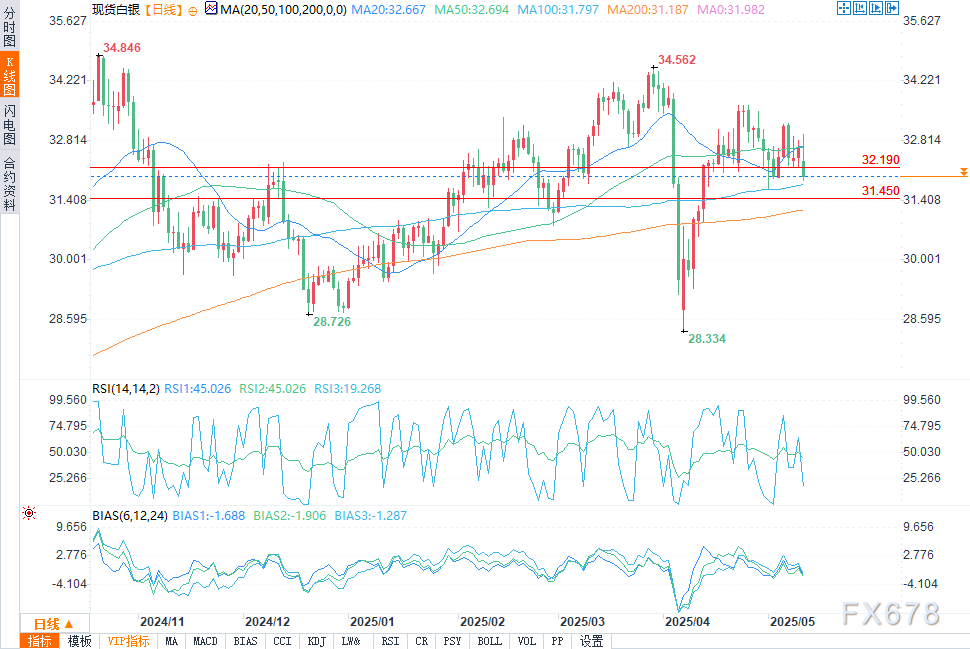 北京时间18:35,现货白银报32.070美元/盎司,跌幅1.93%。